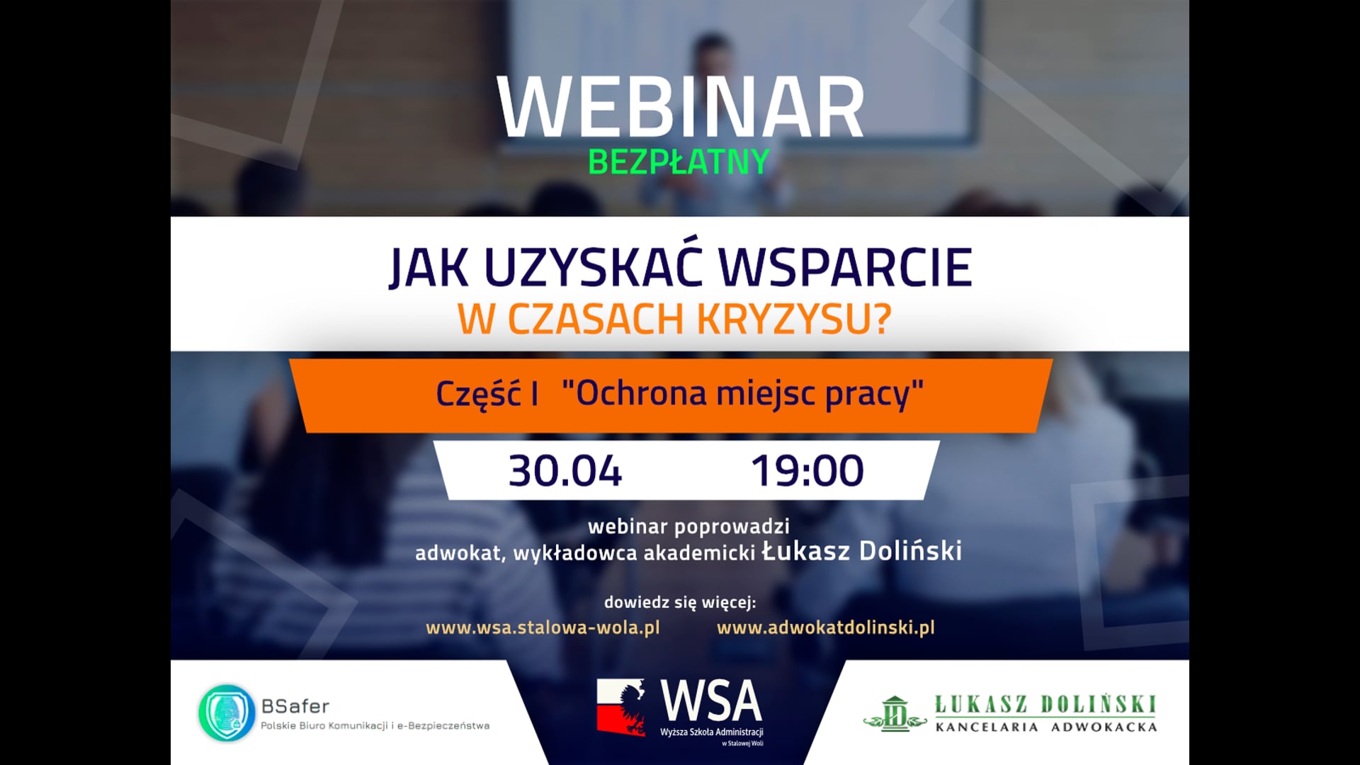 Już w czwartek o godz. 19.00 odbędzie się pierwsze spotkanie w ramach cyklu darmowych webinarów pod tytułem „Adwokaci Przedsiębiorcom czyli jak uzyskać wsparcie w czasach kryzysu?”. Wirtualne spotkanie poświęcone będzie ochronie miejsc pracy.