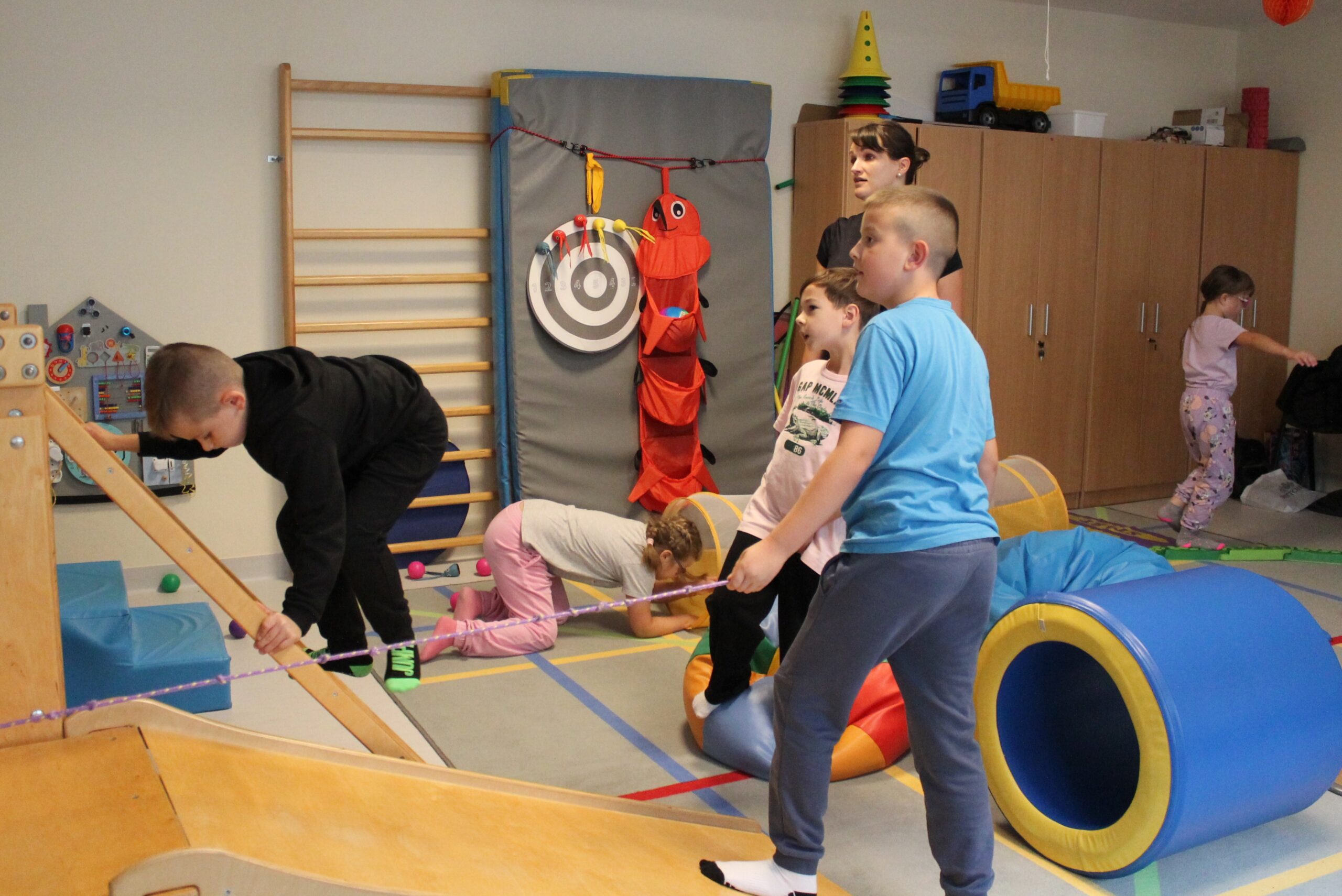 Zajęcia odbywały się raz w tygodniu w przyjaznej przestrzeni Specjalnego Ośrodka Szkolno-Wychowawczego – na sali gimnastycznej oraz w sali do zajęć integracyjno-sensorycznych. Pod czujnym okiem doświadczonych fizjoterapeutów i oligofrenopedagogów uczestnicy angażowali się w różnorodne aktywności ruchowe. Program warsztatów obejmował gry i zabawy ruchowe, ćwiczenia ogólnorozwojowe, wydolnościowe, koordynacyjne, integracyjne i równoważne, a także formy pracy zespołowej wspierające rozwój fizyczny i społeczny.